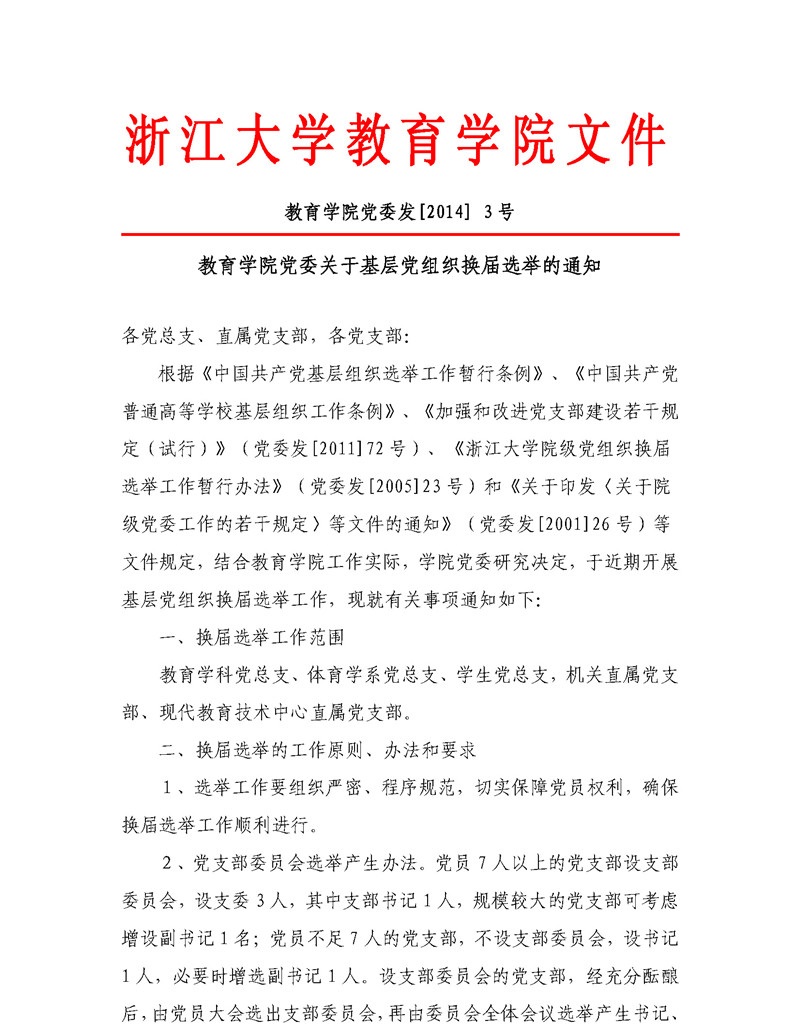 教育学院党委发〔2014〕3号:教育学院党委关于基层党组织换届选举的通知