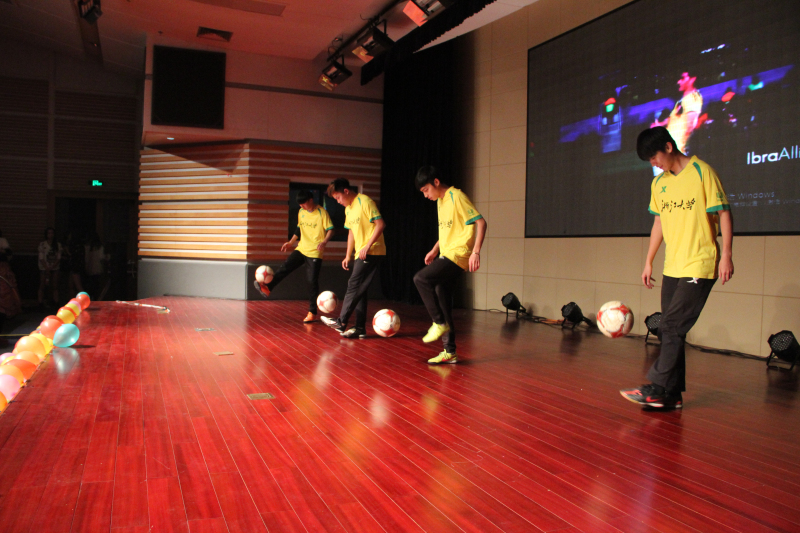 足球是大学生最爱的体育运动之一,浙大足球队历史悠久且成绩优异,由足球队队员带来的节目《足球桑巴》,仿佛将舞台变为绿茵场,花式颠球脚法精湛。“颠球是足球的基本功,运动员平时是反复练习的”指导老师方正的话却道出了精彩背后付出的艰辛。