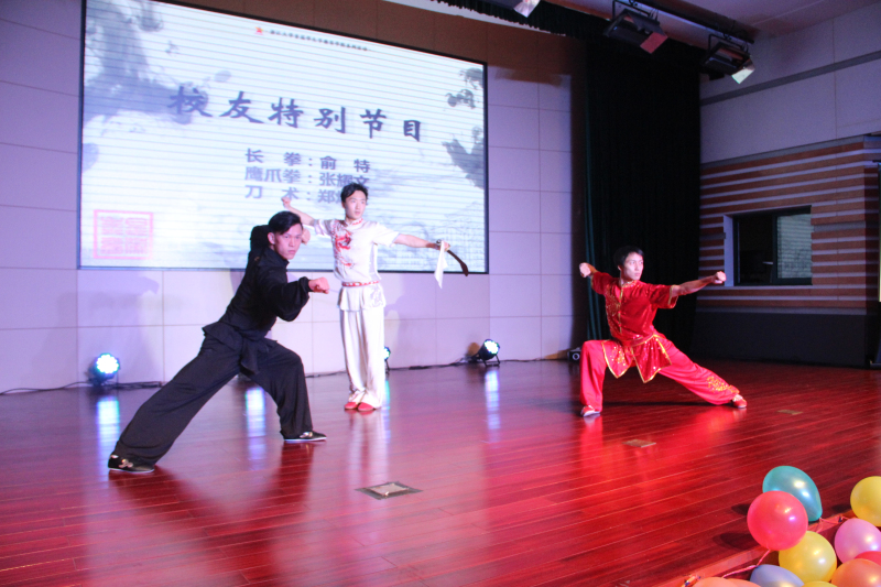 “剑光如虹气如功”正是形容中华武术博大精深。教育学院民族传统体育专业,致力于发扬中华文化武术。此次,教育学院校友与同学一同为观众带来长拳、鹰爪拳、九节鞭等武术套路表演。仁川亚运会冠军王地献上的南拳表演,可谓叱咤全场,震惊四座。少年学拳,由来万夫勇。十足的气概,抑扬顿挫的力道,给观众呈现出武术的魅力。武术队指导老师徐曼,感谢学院对武术的支持,希望未来继续发展武术运动,向世界展现中华文化的瑰宝。