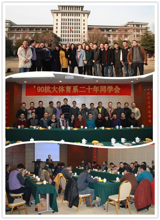 2015年1月10日,体育学系90级体育教育专业校友毕业20周年同学会在杭州召开,来自浙江各地的29位同学参加了此次聚会,原班主任毛一平、方建平老师也应邀出席。 20年前,同学们风华正茂、血气方刚,努力、拼搏,有汗水,有泪水;20年后,大家欢聚一堂,回忆曾经的欢乐、艰辛和真挚的友情,分享学习的收获、工作的成就和生活的美满,同学会在亲切热烈的气氛中圆满结束。