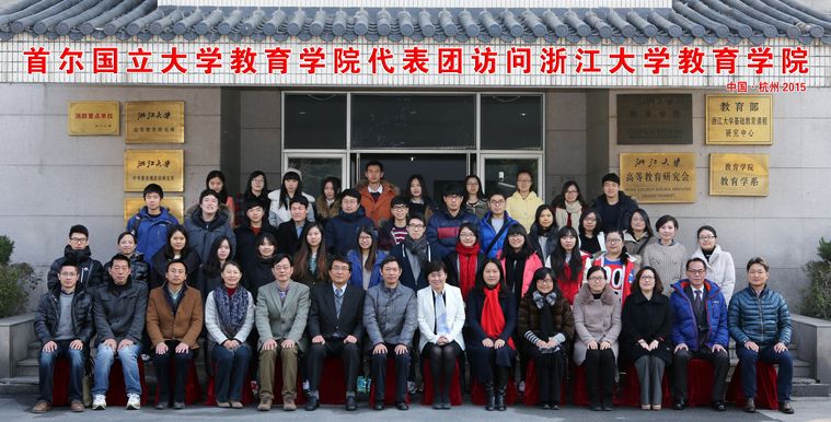 2015年1月8-9日,首尔国立大学教育学院(College of Education,SNU)代表团一行22人访问教育学院。此次访问作为韩国学生的海外实践活动,旨在实地观察中国高等教育与基础教育的发展概况,代表团认为,浙江大学和浙江基础教育具有相当代表性,是研究学习当代中国教育的重要途径。代表团的学生多数是教育学系本科生,由首尔大教育学院副院长YOO JUNE HEE教授任团长,这也是两院2015年度首个大规模师生交流活动。