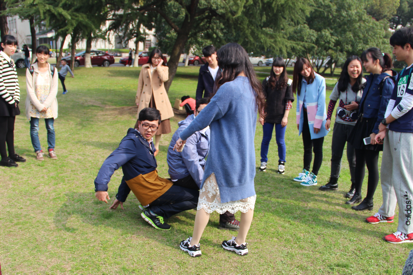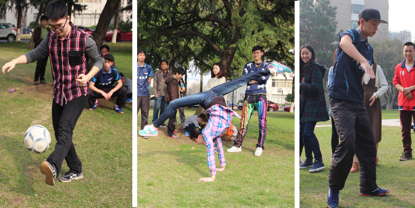 会议结束后,张弛老师和学生会全体成员在西溪校区的坪上上进行了破冰活动,大家相互进行自我介绍,通过“搭人椅”和“五毛一块”的小游戏迅速拉近了同学之间的距离,融成了欢乐的大家庭。破冰活动在同学们的节目表演和张弛老师的颠球展示中结束。