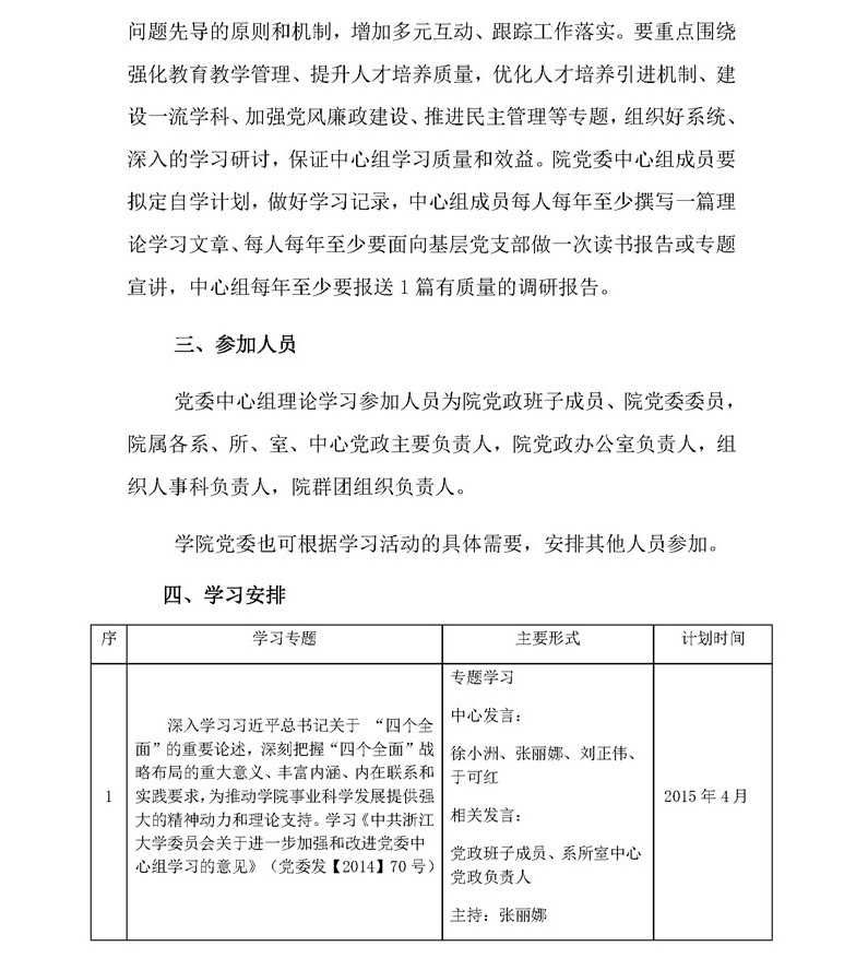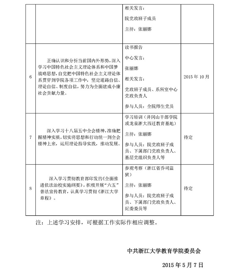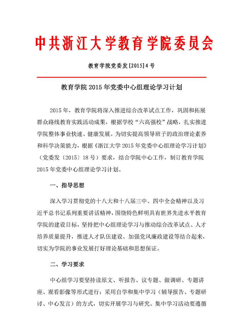 教育学院党委发〔2015〕4号:教育学院2015年党委中心组理论学习计划