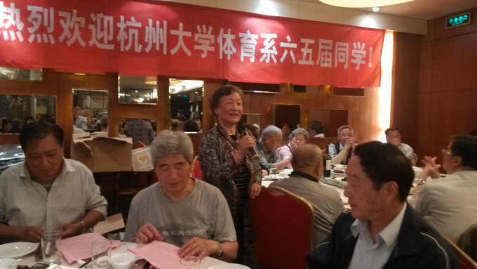 本次同学会的发起人、体育系专65届田径班叶朝生校友代表杭州籍同学向来自五湖四海的同学们表示了热烈的欢迎,并向恩师们致以崇高敬意和美好祝福,对学院的牵挂表达了衷心的感谢。当年体育系年级主任寿云霞老师代表教师深情地回忆起五十年前与同学们朝夕相处的日子,点点滴滴的往事历历在目,半个世纪过去了,虽然大家容颜已改、青春不再,但时间愈久、情义弥深,寿老师祝福大家健康长寿。