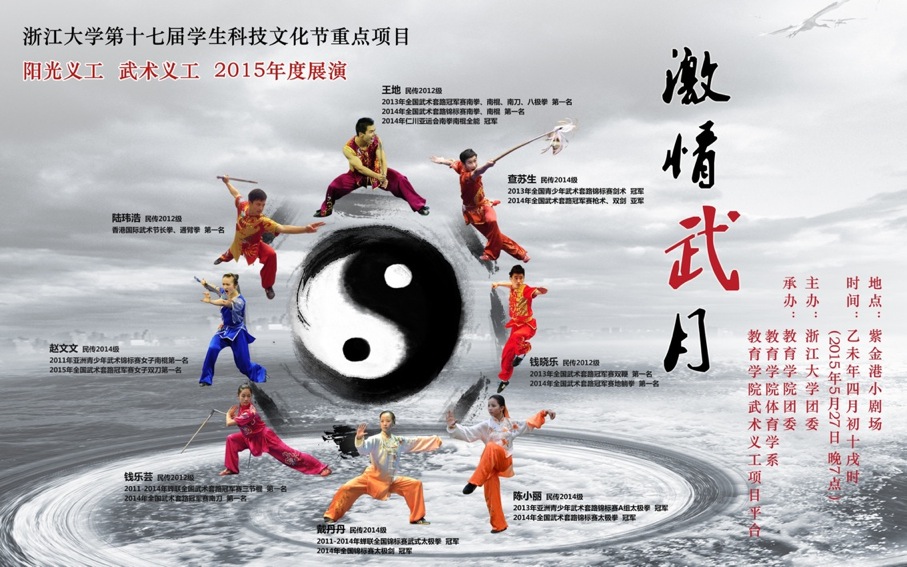5月27日晚7时,紫金港小剧场,教育学院武术义工为您奉上一场视觉和心灵的盛宴。