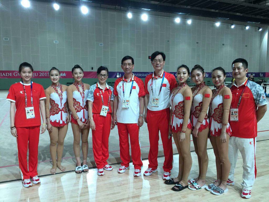 艺术体操队的姑娘们,全部来自我校运动训练本科专业。姑娘们不畏艰苦,奋力拼搏,得到了中国大学生体育协会认可和再次表扬。