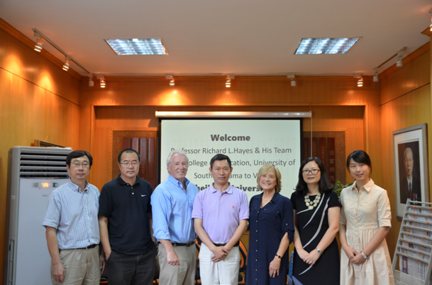 9月9日上午,美国南阿拉巴马大学教育学院院长Richard L.Hayes教授、外事顾问Bree A Hayes女士应教育学院体育学系周丽君教授邀请,到访教育学院,并与学院院长徐小洲教授、体育学系系主任王健教授、系副主任周丽君教授和党总支书记周永平教授进行会谈,以谋求与体育学系在专业设置和人才培养等方面开展全方位合作。 徐小洲院长代表学院对Richard L.Hayes教授一行的来访表示热烈欢迎。周丽君教授对体育学系的历史沿革、专业设置、课程体系、人才培养及国际交流合作进行了详细介绍。Richard L.Hayes教授对体育学系的当前建设情况以及所取得的成绩深表赞赏,并介绍了南阿拉巴马大学在健康体育教育和休闲研究等方面的学科建设现状。在接下来的洽谈中,双方就可达成合作的领域深入交换意见,并提出一系列创新性设想,以实现覆盖教师和学生的各个层面的交流合作。会谈的最后,双方都表达了对正式达成合作的强烈期待,希望后期进一步商讨和确定合作细节。 会谈结束后,双方互赠纪念品并合影留念。