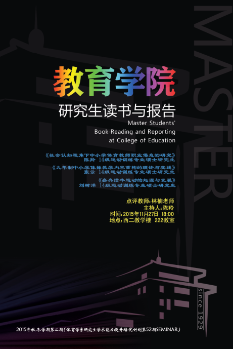 教育学院2015年秋冬学期研究生读书与报告第二期(体育学系研究生学术能力提升培优计划第52期SEMINAR)