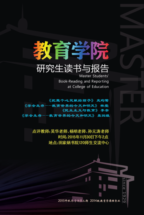 教育学院2015年秋冬学期研究生读书与报告第三期(2014级教育学原理专业)