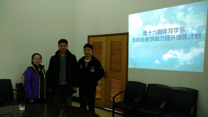 2015年11月25日,教育学院体育学系本科生教学能力提升培优计划第十六期说课展示活动在西溪综合馆二楼会议室如期举行。此次活动特别邀请到了温煦副教授作为本次活动的点评嘉宾,民族传统体育14级的秦晓晗同学担任主持,民族传统体育12、14级学生积极参与本次活动。
