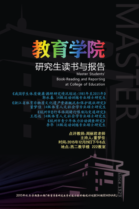 教育学院2015年秋冬学期研究生读书与报告第六期(体育学系研究生学术能力提升培优计划第54期SEMINAR)