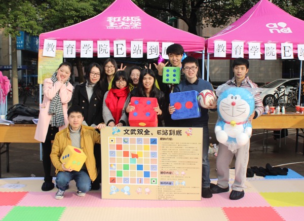 2015年12月25日,教育学院团委主办的“文武双全,E战到底”——“哆啦A梦,伴我同行”西溪学生节游园活动在西溪校区北园篮球场顺利举行。本次活动体现了教育学院教育学科与体育学科相融合的特色,用趣味答题向同学们分享教育知识,用趣味游戏展现我院体育学科的特色。