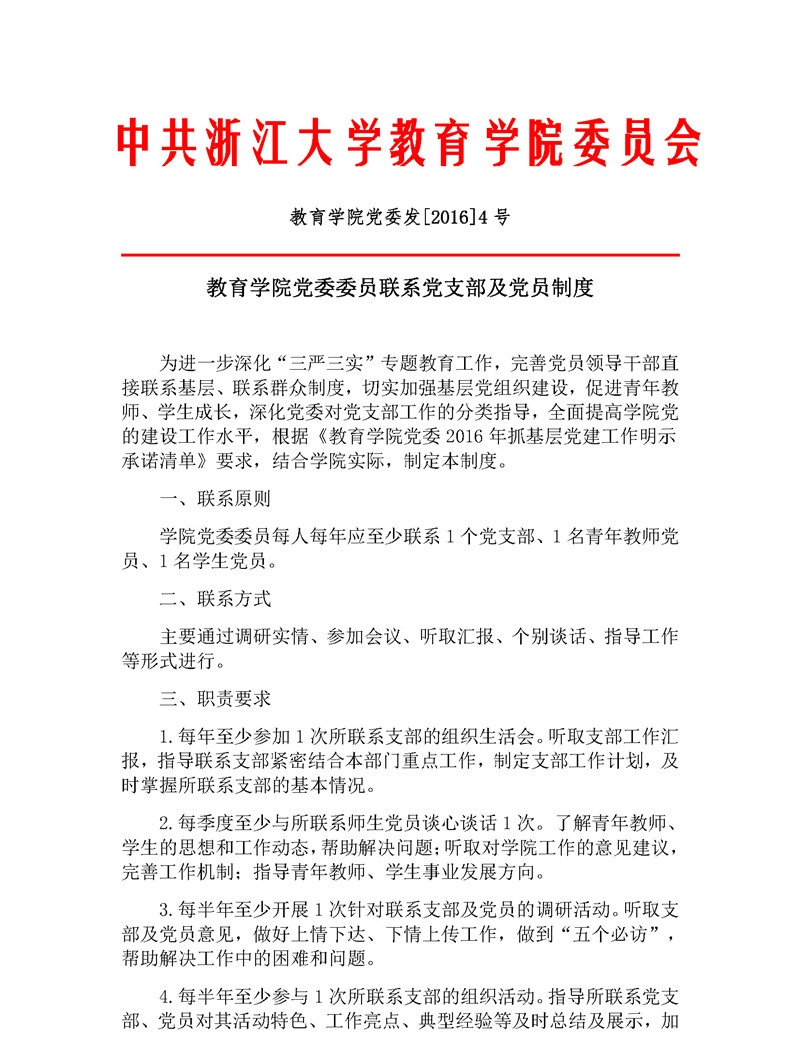 教育学院党委发〔2016〕4号:教育学院党委委员联系党支部及党员制度
