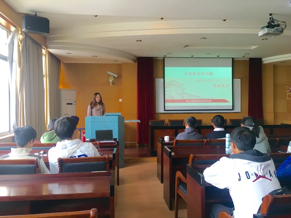 会议的第一个环节的是“主席有话说”,上一任学生会主席施政学长与大家分享他与教院学生会的不解之缘,讲述他与学生会一起努力的日子,施政学长告诉大家,在学生会服务师生的过程中有很多锻炼自己的机会,要坚持不懈的努力争取,同时可以找到很多志同道合的朋友,自己也会在实践中不断成长,变得越来越卓越。