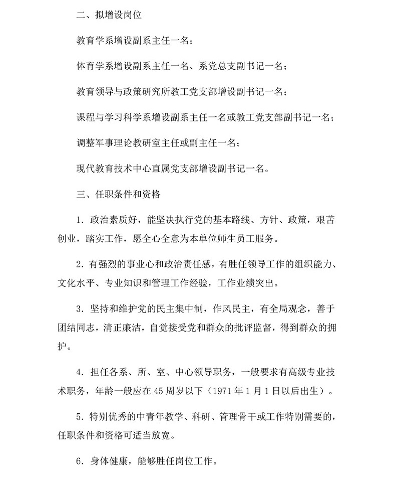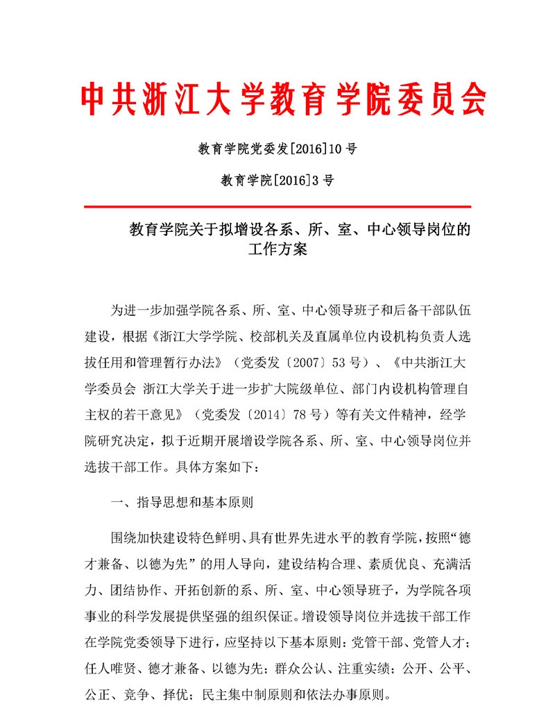 教育学院党委发〔2016〕10号:教育学院关于拟增设各系、所、室、中心领导岗位的工作方案