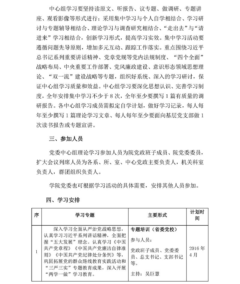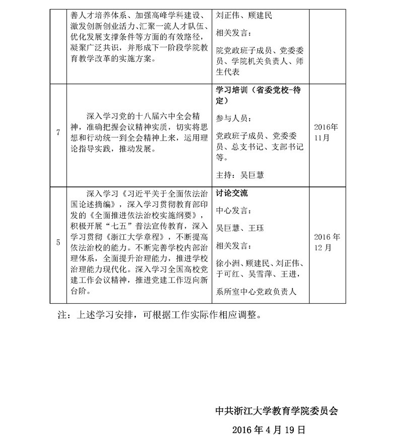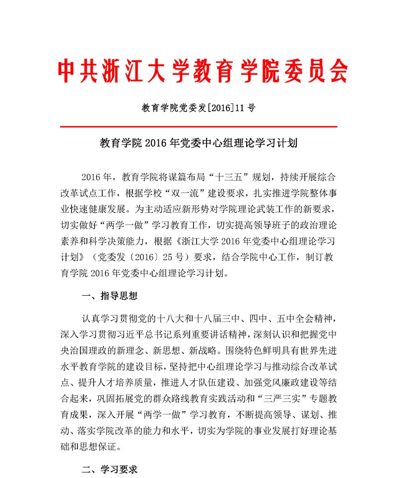 教育学院党委发〔2016〕11号:教育学院2016年党委中心组理论学习计划