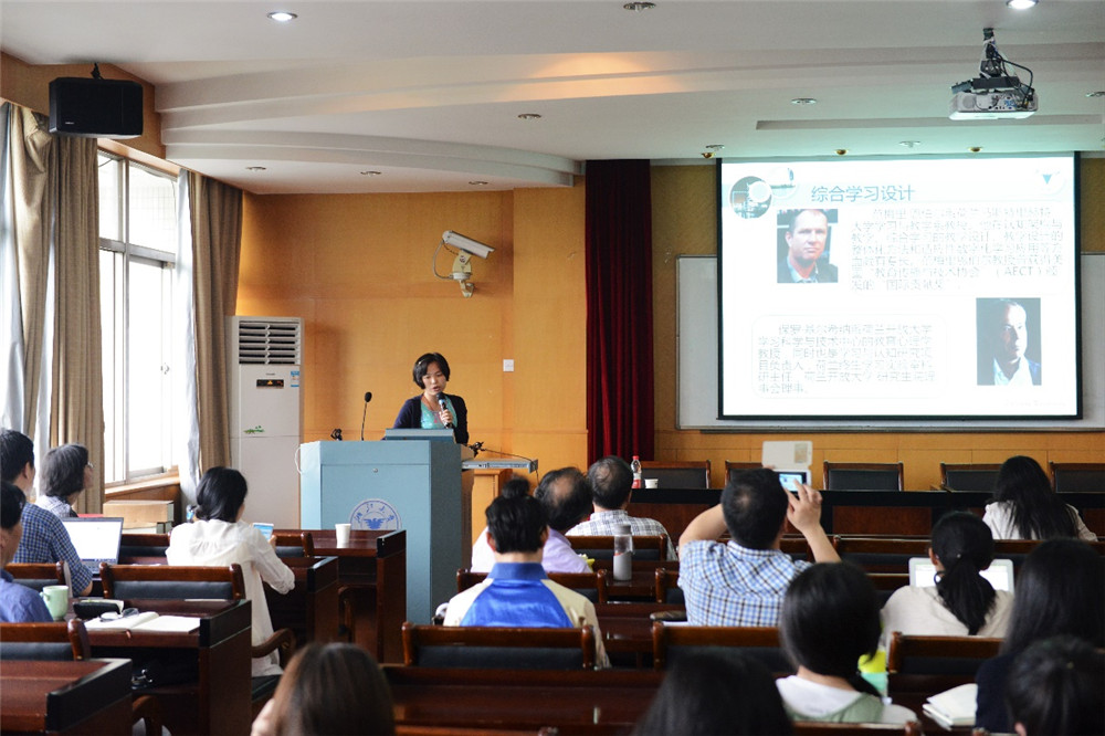 陈明选教授的报告主题为“互联网+背景下的教学创新:围绕理解的翻转课堂”。在“互联网+”大热的时代背景下,翻转课堂作为科学技术与教学设计相结合的典型案例,近年不断吸引着教育界各方同仁的眼球。陈教授也提出“我们为什么要翻转?翻转什么?如何翻转?”等一系列问题。他认为我们应该以帮助学生获得深入持久的理解作为开发和应用翻转课堂的根本出发点,并向我们展示了自己将这一理念应用到真实教学中的具体案例。