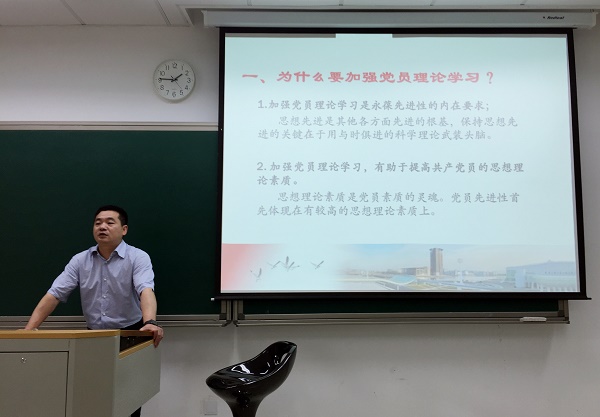 吴巨慧老师为党员同志们带来第一堂党课《如何组织理论学习》。吴老师立足先锋学子培训计划的持续开展,阐述“两学一做”重要意义,强调党员接受继续培训的重要性。结合习近平同志系列讲话精神,他从“为什么要开展理论学习”、“学什么”、“怎样组织有效的学习”三方面讲述了学习活动的组织原理与方法技巧,并表示,从思想上“补钙”,是永葆先进性内在要求,也是提高共产党员思想素质、道德修养及为人民服务本领的必然要求。谈及学习内容的选择和设计,吴老师重申党史、党章和党规基础学习;同时,立足教育学院,提出当前学习把握教育体育产业创新理论及创新实践探索机遇的重要性。在党课最后一部分,吴老师还联系自身经历,从个体学习、集体学习两个角度阐释怎样组织理论学习,鼓励大家阅读并以《新华文摘》、《人民日报》等高质量刊物作为日常读物,在日常积累同时更好发挥党员辐射作用、分批分层次层层推进,扩大学习覆盖、增强学习效应。年轻的党员们因此对如何组织理论学习有了新的体会。