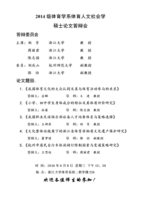 【答辩】体育人文社会学专业硕士学位论文答辩会