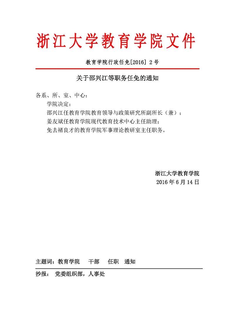 教育学院行政任免〔2016〕2号:关于邵兴江等职务任免的通知