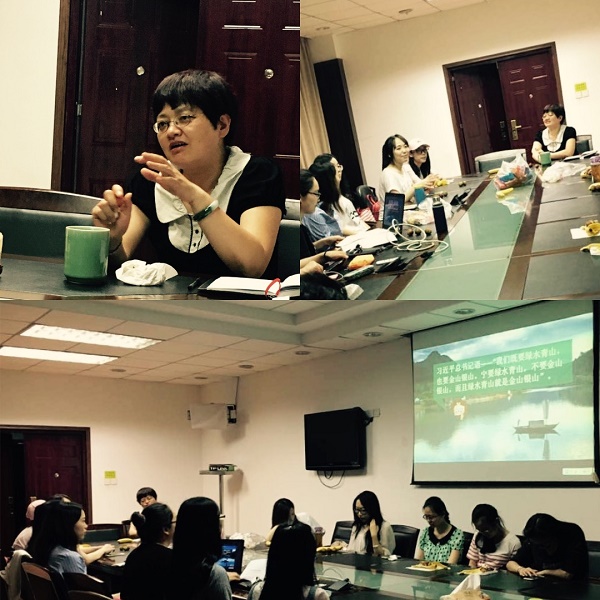 活动开始,教育学1301班的毛月同学代表展示支部“两学一做”学习成果。毛月同学紧紧围绕习近平系列讲话中“绿水青山也是金山银山”这一思想,通过比较国外美索不达米亚平原的生态破坏悲剧和自己的家乡丽水的生态保护成果,生动具体展示保护环境的重要性,这让在座的党员认识到,要实现伟大的中国梦,保护美丽的中国山水是不容忽视的。