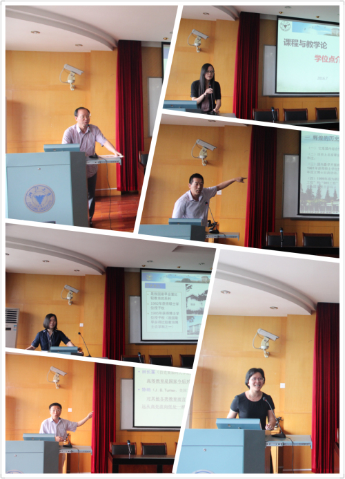 杨明教授、刘徽副教授、陈胜副教授、刘淑华副教授、蓝劲松教授、李艳教授 林楠博士、温煦副教授、郭怡副教授、邱亚君副教授 先后介绍各学科情况 |