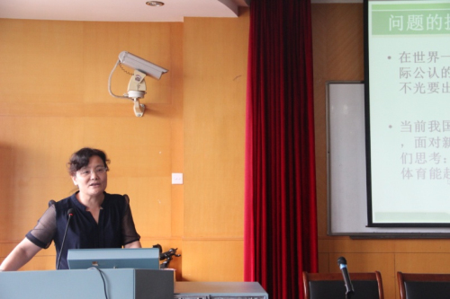 副院长顾建民教授作了题为《创造未来:关于教育发展基本问题的思考》的学术报告。他与大家分享共创未来的教育观点,从教育的效率、公平、质量三者的关系对中国教育改革与发展及问题进行了回顾与探讨。他指出,大学是国家的未来,是民族发展的引擎,他充分肯定了我国基础教育改革的成果,同时对以提高高等教育质量为中心的改革进行了展望,引发了大家深入思考。副院长于可红教授作了题为《一流大学与体育文化互动发展》学术报告,向大家介绍了世界一流大学及其体育文化。她从意大利文艺复兴时期的大学,到德国洪堡大学,再到美国新型大学的历史回顾中指出,大学的兴旺推动了民族国家的强盛。她还诠释了国外名校所拥有的独具特色的竞技项目传统,如牛津剑桥的划艇比赛、哈佛耶鲁的橄榄球比赛等。于老师的讲座激发了与会者的兴趣,开拓了大家的视野。
