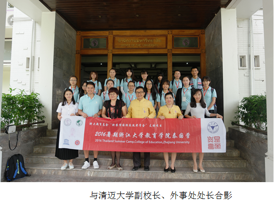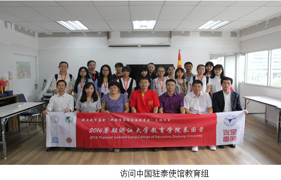 2016年8月30日至9月6日,由浙大教育学院教育学系主任吴雪萍教授带队的教育学院师生访问团赴泰国开展学术文化交流活动。访问团师生参访了中国驻泰使馆教育组和朱拉隆功大学、亚洲理工学院、国家发展管理学院、正大管理学院、清迈大学、清迈皇家大学等泰国著名高校,通过座谈交流、旁听课程、人物专访等多种形式深入了解泰国高等教育发展状况。本次活动获得浙江大学教育基金会浙农信国际交流奖学金的支持,活动加强了中泰两国高校间的交流与合作,增进了两国青年学生之间的了解。