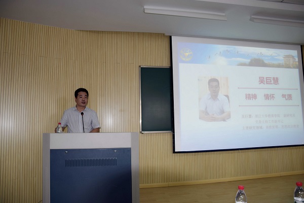 青年教师温煦老师从诗句“不畏浮云遮望眼,只缘身在最高层”入手,建议大家能拨开浮云,抛开功利,站在更高更广的角度来关注自身的收获和成长,真正做几件让自己感动、让家人骄傲、让他人尊重的事情。不负此生,不负其心。学长代表唐佳颖从身心健康、学习、学生工作和社团生活、社会实践和交流机会四个方面与大家分享了她的经历。新生代表陶宏表达了入学的欣喜和决心,她认为研究生阶段更应该认真进行专业研究、积极参加社会活动,将浙大的求是精神传承下去。