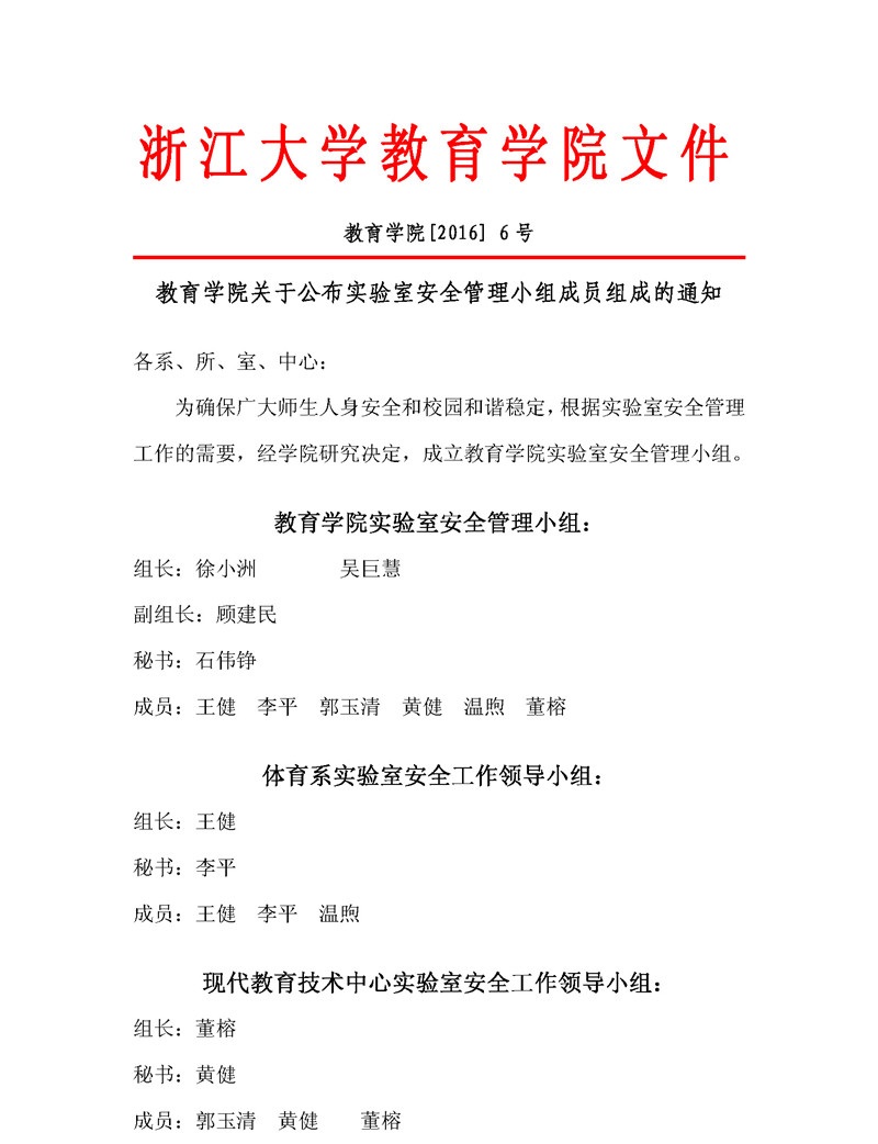 教育学院〔2016〕6号:教育学院关于公布实验室安全管理小组成员组成的通知