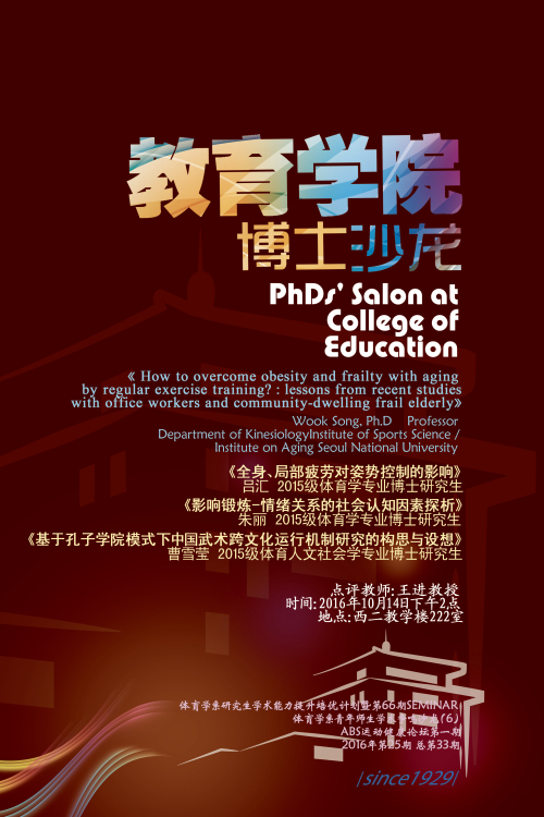 【博士沙龙】2016年第25期(体育学系研究生学术能力提升培优计划暨第66期SEMINAR)