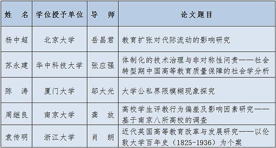 为促进高等教育学学科的发展,提高高等教育学博士研究生的培养质量,中国高等教育学会开展了第十二届“高等教育学”优秀博士学位论文的评选工作。此次论文评选工作于2016年3月启动,经专家通讯评审、专家会议评审会审定,共评选出5篇“高等教育学”优秀博士学位论文,同时,评选出“高等教育学”优秀博士学位论文提名奖5篇。
