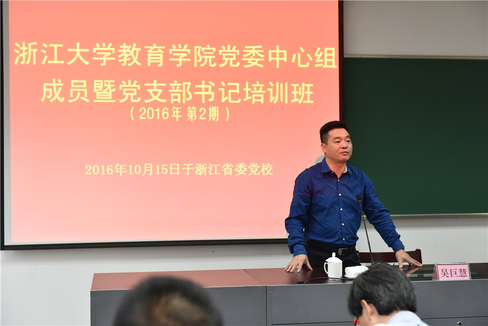 10月15日,教育学院2016年第2期党委中心组成员暨党支部书记培训班在省委党校举办,学院党委中心组成员,各党总支委员、直属党支部委员,各党支部书记及支委,学院机关管理人员40余人参加学习培训。