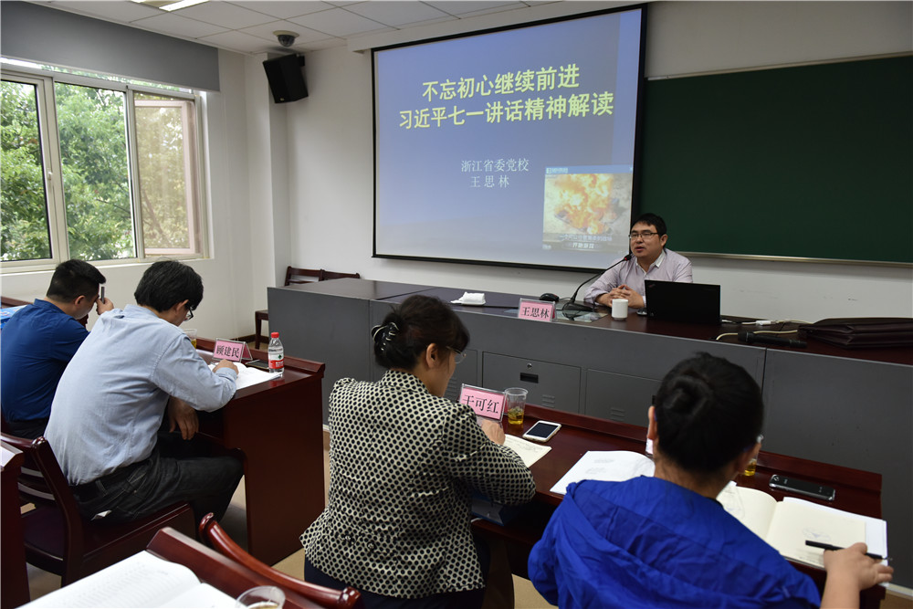 本次培训班安排了“不忘初心,继续前进—— 习近平总书记95周年纪念讲话重要精神解读”以及“守纪律讲规矩,做政治上的明白人”两大主题的学习,邀请省委党校党史党建教研部副教授王思林、省委党校党史党建教研部副教授成为杰先后授课。“不忘初心”学习专题在回顾习总书记全面从严治党思想脉络的基础上,引入对习总书记七一讲话精神的解读——“不忘初心,继续前进”深刻阐明了我们党从哪里来,立党为了什么,如何一路走来,又将往何处去的问题,贯穿了大逻辑、凸显了大历史、体现了大视野、展示了大格局、彰显了大自信、澄清了大迷雾;“学习党的规矩”专题从当前反腐败形式的严峻性和复杂性讲起,分析了党内腐败发生的主要原因,提出党员干部应当增强规矩意识、自觉遵守党的纪律,并用以生动、翔实的图片及文字资料对贪腐典例进行深度剖析,用反面教材说明了切实增强党员干部廉洁从政意识的迫切性和必要性。