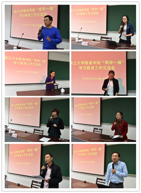 2016年10月15日,教育学院组织召开师生党支部“两学一做”学习教育工作交流会,对各支部半年来“两学一做”阶段性工作进行了总结交流。学院党委主持工作副书记吴巨慧、党委副书记王珏,各师生党支部书记,相关科室负责老师近20人参加会议。