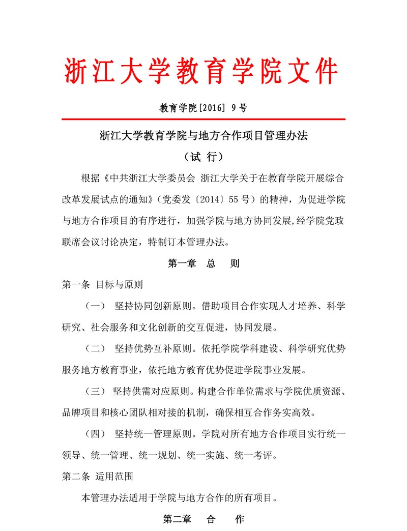 教育学院〔2016〕9号:浙江大学教育学院与地方合作项目管理办法(试行)