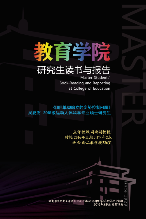 【研究生读书与报告】2016年第9期(体育学系研究生学术能力提升培优计划暨第68期SEMINAR)