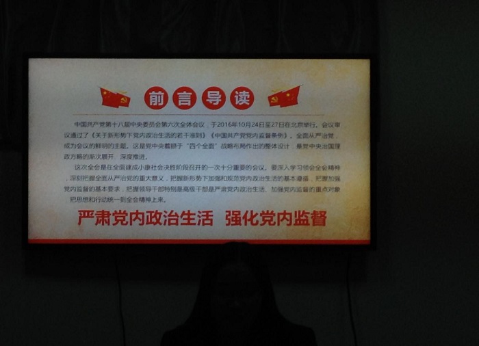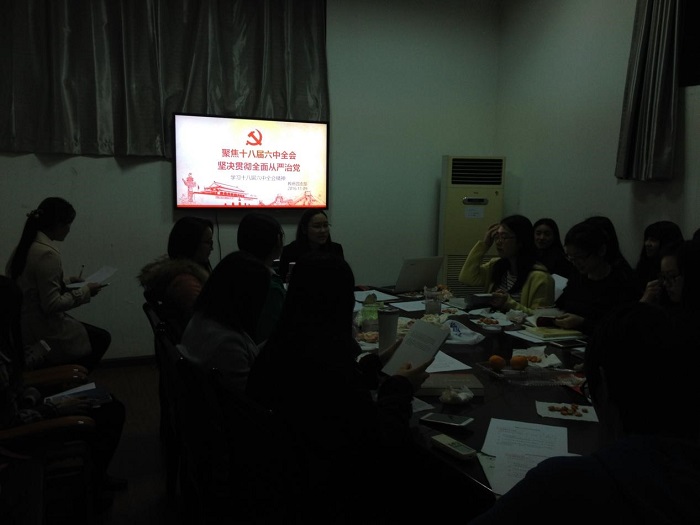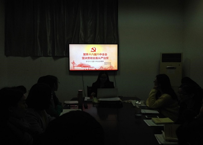此次会议聚焦十八届六中全会,集中并深入学习了坚决贯彻全面从严治党思想,号召支部成员深刻把握全面从严治党的重大意义,领会十八届六中全会精神。项欣欣从十八届六中全会时间地点及主要内容出发介绍了全会概况,并对严肃党内政治生活做出重点解读,指出党要管党必须从党内政治生活管起、从严治党必须从党内政治生活严起的必要性,强调高级干部特别是中央领导层组成人员以身作则的重要性,提出坚定理想信念是开展党内政治生活的首要任务。会议还从指导思想、主要任务、主要内容、重点对象、监督体系等方面深入学习了强化党内监督重要思想内容,并对党的十九大的召开做出展望。