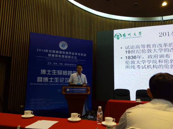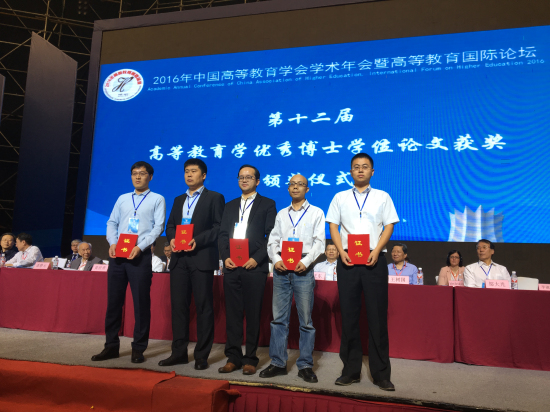 “中国高等教育学会第十二届高等教育学优秀博士学位论文奖”的颁奖仪式近日在广西南宁举办的“2016年中国高等教育学会学术年会暨高等教育国际论坛”开幕式上隆重举行。中国高等教育学会秘书长康凯宣读了“中国高等教育学会第十二届高等教育学优秀博士学位论文获奖名单”,由教育学院肖朗教授指导的2015届教育史专业博士生袁传明撰写的《近代英国高等教育改革与发展研究——以伦敦大学百年史(1825-1936)为个案》荣获本届优秀博士论文奖。中国高等教育学会于2016年3月启动了第十二届“高等教育学”优秀博士学位论文的评选工作,经专家通讯评审、专家会议评审会审定,在全国范围内共评选出了5篇优秀博士学位论文及5篇提名奖论文。