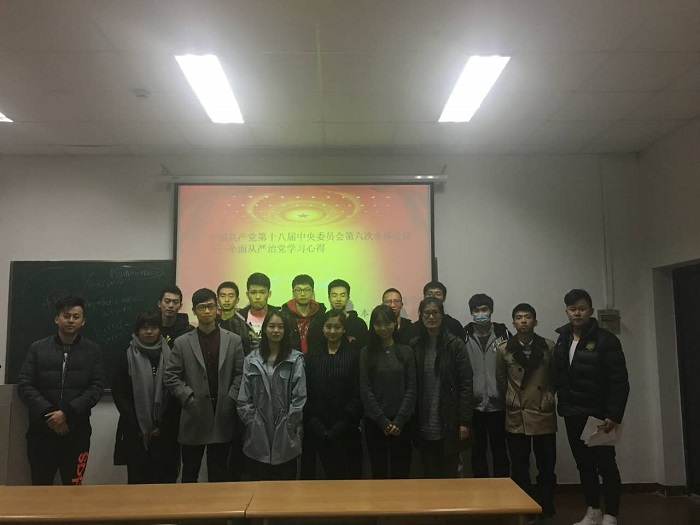 支部与会成员就十八届六中全会精神,并结合此次党课内容,展开了讨论。支部成员认为,全面从严治党要从制度建设抓起,从政治生活抓起,学生党员应该在思想上常敲警钟,从自身做起,认真学习、工作,并发挥力量为支部营造良好氛围。