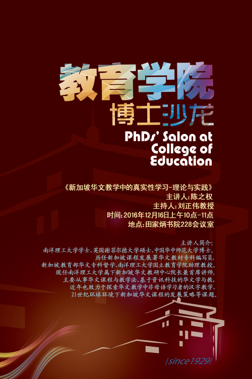 【博士沙龙】新加坡华文教学中的真实性学习-理论与实践