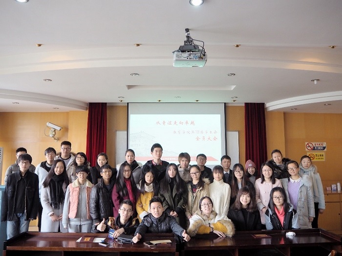 2016年12月18号上午,浙江大学教育学院学生会第十八届全员代表大会在西溪校区田家炳书院520报告厅召开。浙江大学教育学院团委副书记张静波老师,第十七届学生会主席项玲连和来自教育学院学生会不同年级,不同职位的学生干部们参会,学生会副主席陈易楠主持了本次会议。