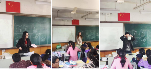 新年少不了互赠礼物,而自己动手制作或包装的礼物往往可以更好地让对方感受到爱和祝福。第二个环节,同学们需要自己动手包装礼物,给礼品穿上外衣系上蝴蝶结。“穿外衣”过程中,志愿者杨佳欣引导同学们认识模拟礼品(四包纸巾)的形状——长方体。在明确目标和规则后,同学们以小组合作的方式,通过对礼物的表面积的计算和比较判断,寻找节约资源条件下四包纸巾组合方式的最优化,以及探索了包装纸的大小剪裁技巧。而“系蝴蝶结”过程则让同学们预习了长方体周长的相关知识。同学们分工协作,计算、裁剪、包装,最终都合作完成了精美的作品,并到讲台上进行小组展示。通过这个环节,同学们在对长方体的知识有了提前的认识和理解、拓展思维的同时又学会了包装礼物。