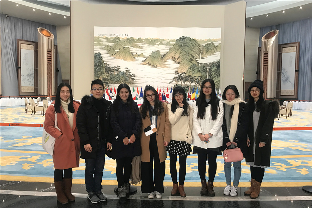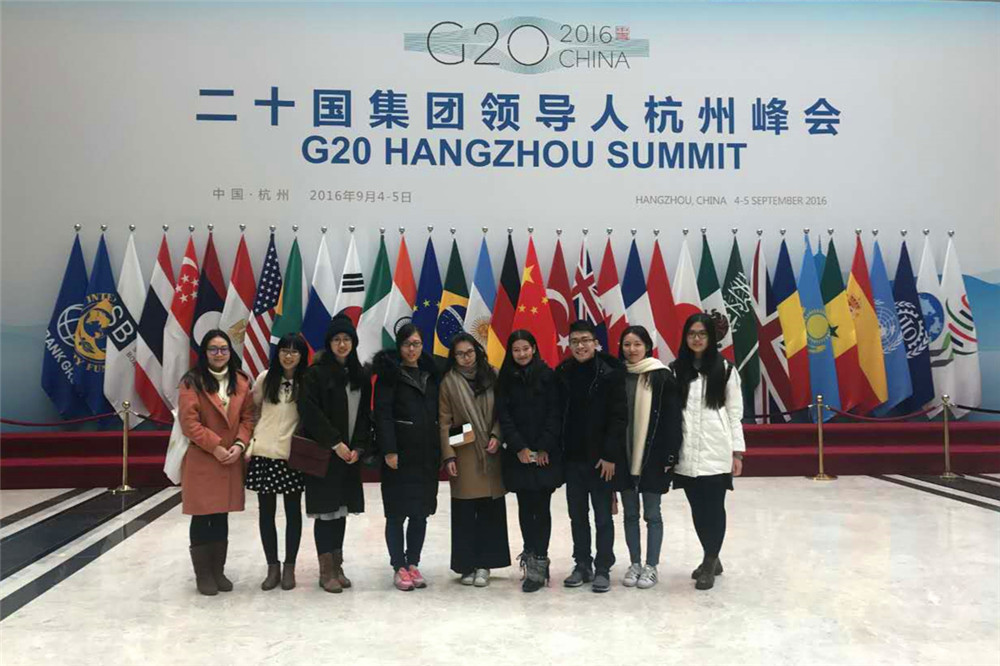 2016年9月4日至5日,杭州国际博览中心作为G20杭州峰会主会场,成功接待了20多个国家及国际组织的领导人。其大气磅礴的国际范儿和婉约隽秀的江南韵味,给世人留下了深刻的印象。参加活动的师生依次参观了G20峰会的迎宾区、主会场、午宴区和空中花园。整个会场建筑呈现出庄重、现代、宏伟、绿色的独特风貌,让大家深刻感受到了大国风范、江南特色和杭州元素。场馆内精美的花窗和木雕,直径达30多米的大圆桌和各种充满中国风的设计,引起了大家的阵阵惊叹,也切实感受到了峰会精神和杭州国际博览中心的独特魅力。