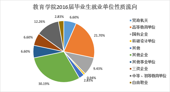 2016届全体毕业生的主要就业单位类型主要集中于以下9种,其中还包含1个民营500强企业和2个世界500强企业。