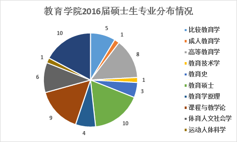 2016届毕业研究生共77人,其中硕士生58人,博士生19人。分布在比较教育学、成人教育学、高等教育学、教育技术学、教育史、教育学原理、教育硕士、课程与教学论、体育人文社会学、运动人体科学、运动训练11个研究生专业。到2016年底,研究生就业率为97.40%,2名研究生未就业,博士生全部就业。
