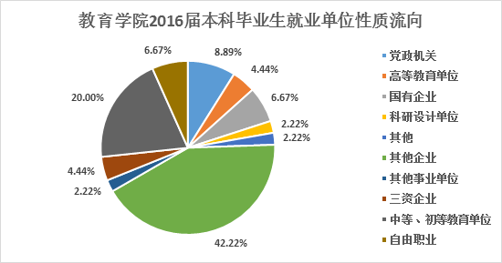本科生主要的就业单位性质为其他企业和初中等教育单位。
