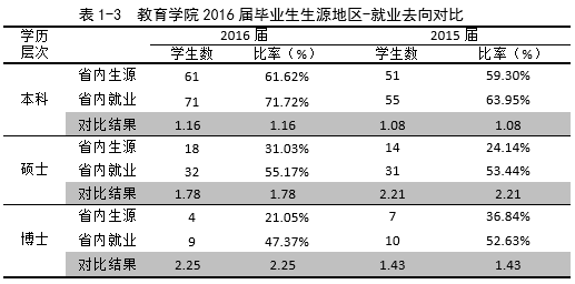 注:以上省内生源基数为全体学生,省内就业基数为签约就业学生,包括三方协议、合同、应聘、灵活就业。