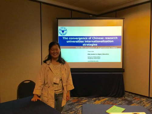年会中,薛媛参加了“高等教育国际化的数据分析”及“高等教育国际化的比较观点:对全球竞争力的重新思考”工作坊,并做了“中国研究型大学国际化战略组织趋同”的学术报告。通过与世界各国的教授和博士生们一起交流和研讨,她对大学国际化的发展方向和研究路径有了更加深入的认识,同时也发现许多外国学者对中国高等教育国际化政策及实践有不少了解和浓厚兴趣,这使她深深地感受到中国作为高等教育大国的影响力。