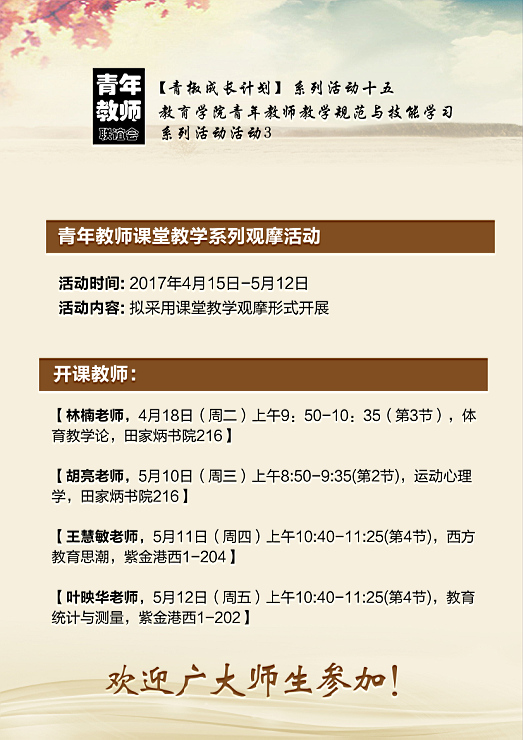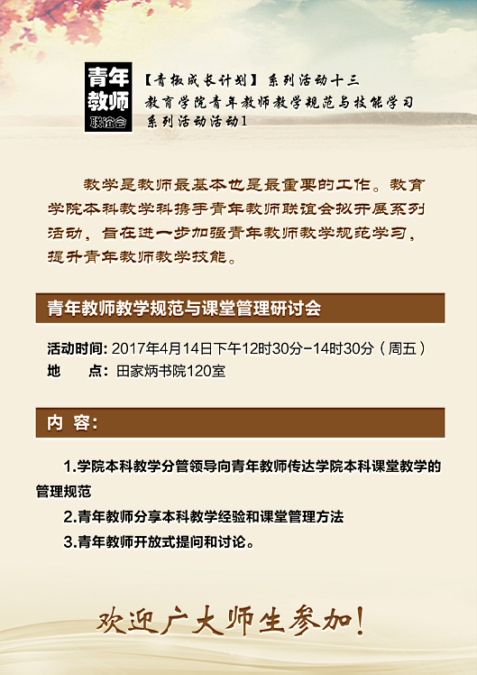 教育学院青年教师教学规范与技能学习系列活动通知